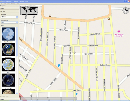 Virtual Desktop globe and geographical atlas ; offers viewing of OpenStreetMaps.