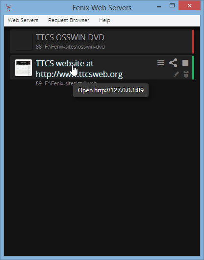 Fenix allows web developers to run static web servers easily on their desktop. Web developers can work on multiple web sites and start and stop multiple web servers side by side with different ports with ease.