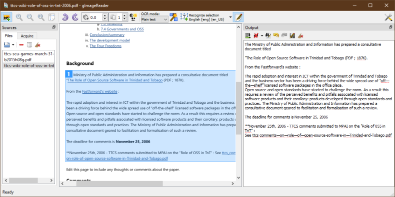 On loading a source image or PDF, you can select which part of the image or PDF you want text to be recognized.